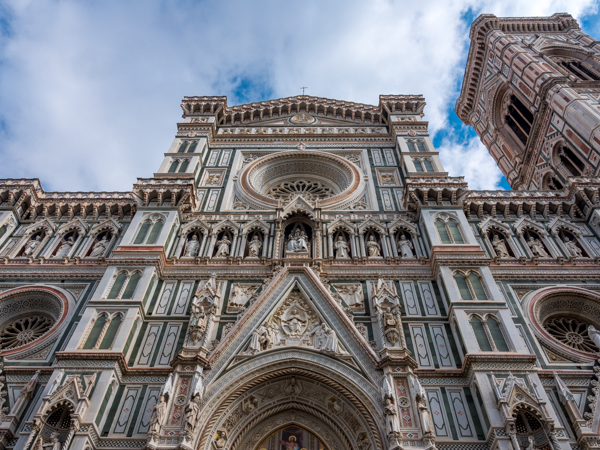 The ornately decorated facade didn’t start out that way. Rather, it resembled the more plain Baptistery of St. John, across the plaza. (My feeling is, if you were Manhattan-rich you had your bat mitzvah in the main church, slightly poorer, like Long Island rich, you had it in the Baptistery. I realize this analogy has its limits.) Spare cash from the Medici gussied the frontage up over a period of time. Believers felt the marble representing the Gods and Saints were alive somehow. The “energy” of the building is undeniable.