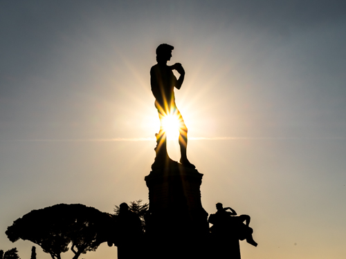 This was the original home of David, everyone’s favorite man with (apparently) weak ankles. At some point the Italians figured old, famous, tourist attracting sculptures were susceptible to the elements outside. Plus when you enclose them in a building, you can charge admission. A bronze copy stands in its place. I read the piazzale was supposed to be a museum (of sorts) for Michelangelo’s work. This plan, however, never came to fruition. Now tourists jockey for space along the railings to take a bazillion pictures of Florence down below. Counterfit goods are also sold nearby.