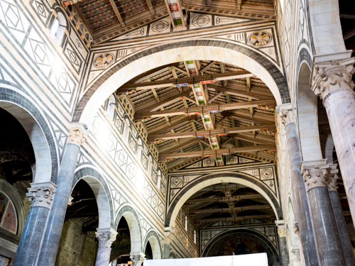 We walked further up the hill to San Miniato al Monte, a church that sits high above Florence. Built in 1018, it feels a lot less ostentatious than The Dome. I guess the Medici didn’t care about this church enough to gussy it up; the interior is largely unchanged from the initial construction. A plus from the basilica in San Marco: less human sacrifice decorating the walls, instead replaced with geometric marble shapes. This might be the church for me.