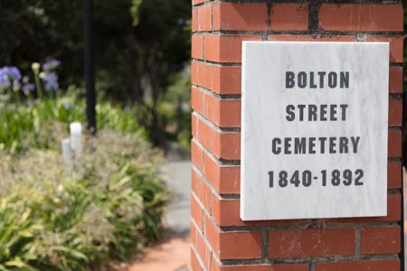 We toured The Bolton Cemetery after finishing with the gardens. They built a highway right through the thing and moved most of the bodies. The headstones remain in roughly the correct place, just densely packed together in a very unusual way.