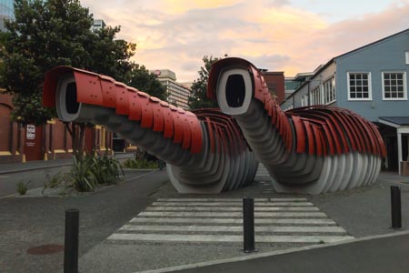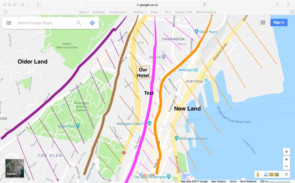 Like everything in New Zealand, Wellington owes much of its geography to seismic forces. A massive fault runs just behind our hotel along Highway 1. It’s a nasty one, too, a strike-slip fault like the one which caused the Christmas Day Tsunami. Evidence of its machinations are all around. Lambton Quay not so long ago used to be shore front property, but is now several blocks inland. In 1855 a massive earthquake pushed everything up. They renamed it to Lambton Quay from, and I’m not making this up, Beach Street.