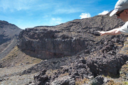 The switch backs are numerous. This face of the mountain was pummeled by rocks in 2005 and 2006 from a nearby volcano, different than any we’ve spoken about already. Massive pot-marks dot the landscape, as well as 3 ton rocks which clearly belong miles away. Thus, nobody is allowed to camp here anymore, as it’s deemed too hazardous. The hut you see in the picture had a rock fall through the roof. Fortunately nobody was hurt.