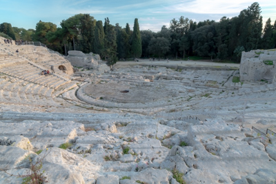 The ZTL I ran afoul of was on Ortigia, an island off the coast of Siracusa, which is the city’s historical center. Many old buildings and landmarks dot the island — fountains, theaters, churches, temples … the usual fare. People actually live here as well, and the place feels more like a community than some of the smaller towns we’ve visited. Certainly more going on here. The University of Catania (and I think Siracusa) have an outpost at the tip of the island, for studying architecture. Man, did I major in the totally wrong thing.