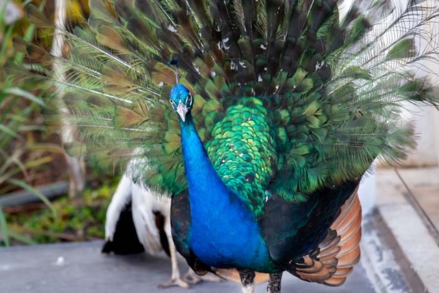 There are two peacocks which roam the property, like cats or dogs might. They are a couple, and they sleep in the tree above the pool. As I write this, they’re hanging out near me, pecking at my laptop charger. The male decided to show off his plumage, seemingly aware I was taking pictures. All RBD or myself can see are the cold, dead eyes of ancient dinosaurs, just biding their time before they attack and take back this world.