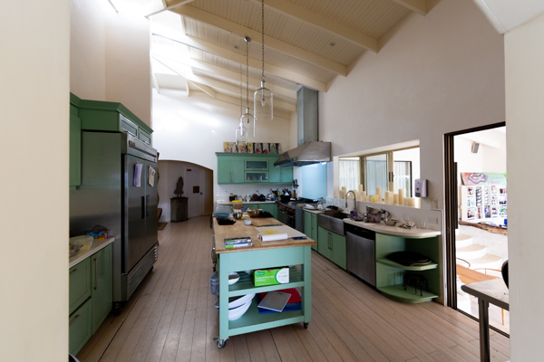 This place she bought used to be a private home. The main house is where reception, the shop, the kitchen, and her residence are located. Two more buildings, including the yoga studio and adjacent rooms we’re in, plus several cottages below were built before opening.