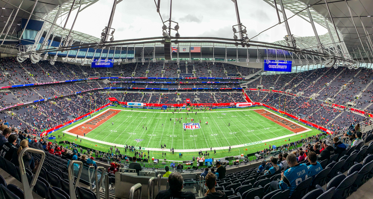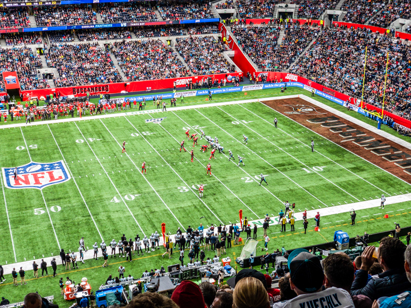 Now in 2019, thirteen years after the Wembley Stadium mud-fest, London will host four regular season NFL games and Mexico City will host one. RBD and I saw game two of this year’s series, the Carolina Panthers “at” Tampa Bay. The Bucs were technically the home team, though the stadium had many more Panthers fans. I imagine that’s because there are significantly more Carolina fans generally. On Facebook the Bucs have about 900k fans on their team’s page, while Carolina has 2.2 million. (The Cowboys have over 8.5 million.) I digress… The stadium is north of London, accessible by mass transit, in Tottenham. I’ll speak more about it tomorrow.