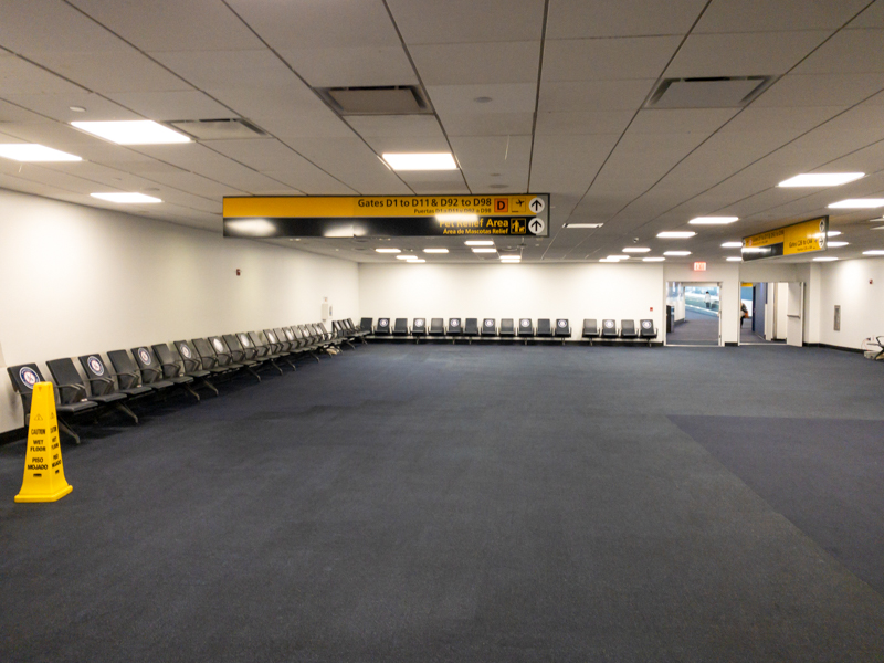 Every aspect of LGA is designed to handle thousands of people per hour. I saw, maybe, 75 passengers total before boarding. It is eerie and strange to be in a place meant to handle so many house so few. Despite many shops being closed, workers far outnumbered us travelers.
