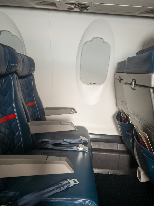 Onboard the flight, passengers were staggered in a theatrical attempt to socially distance. Regardless, I felt safer on the airplane than Amtrak only because I could control how the air blew in my face.