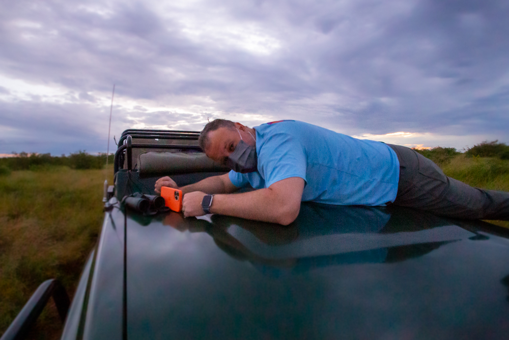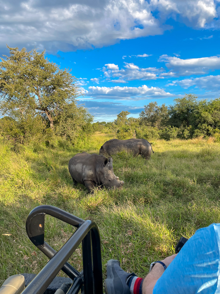 Producer RBD takes a pic from our vehicles of the rhinos having dinner. They eat a lot, and because it’s grass, pass an enormous amount of gas.