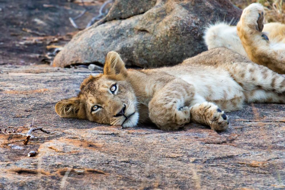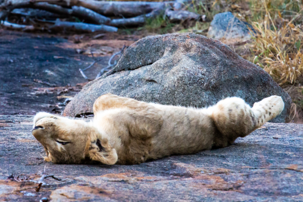 The rocks radiate heat as the air cools, which must feel nice on the backside. Lions seem to wake up about as willingly as we do.