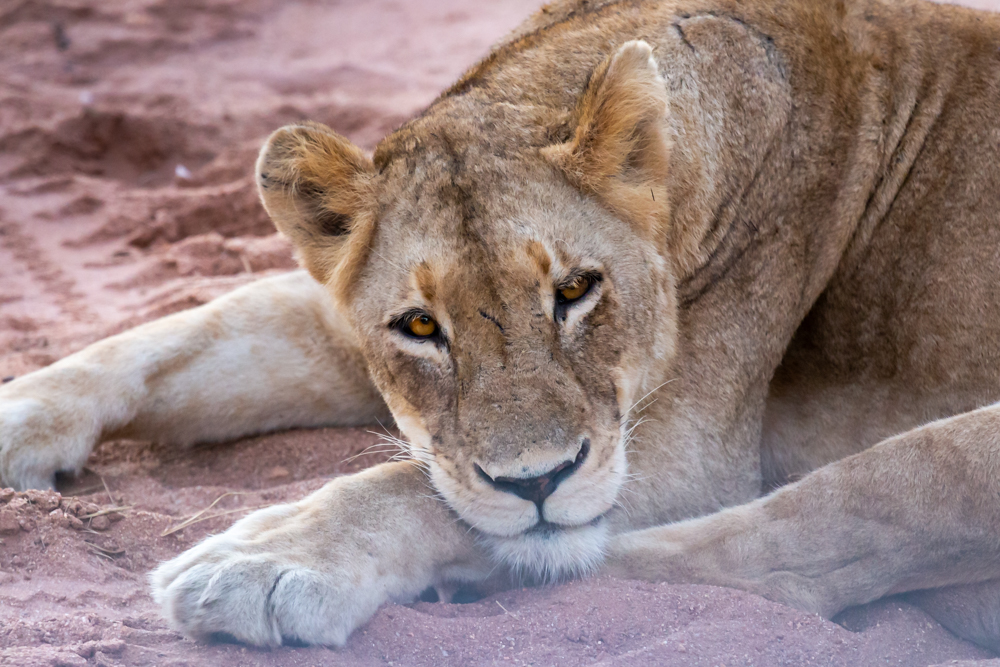 This lioness came quite close to us to inspect. She, too, was not ready to get up and sat back down in front of our vehicle. As long as you stay seated and don’t move, the lions do not perceive a “human” and will ignore you. Trust me when I say when a lion walks adjacent to your vehicle, staying very still is not an issue.
