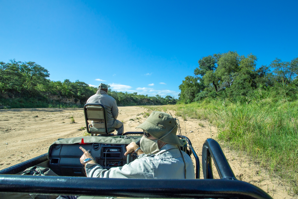 There are two staff members who accompany guests on game drives. One is the Ranger or Guide, and the other is a Tracker. The Tracker sits in the seat off the hood on the left side and, as the name suggests, tracks the animals. The Guide drives while managing the whole guest experience. At first glance the positions may seem redundant. You’d be absolutely wrong.