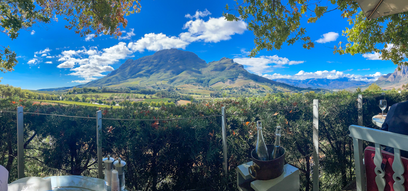 You know how to make a million dollars in wine? Start with two million. Cape Town is far off in the distance. We are east of the city in the wine region.
