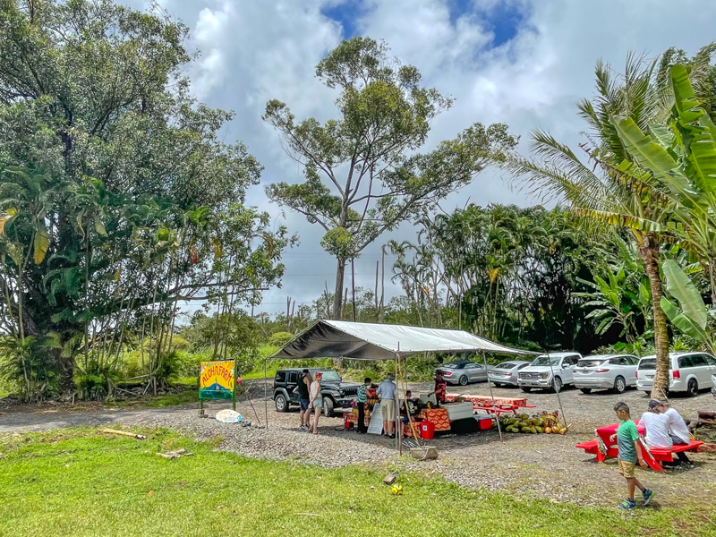 Because of the incredible amount of water falling from the sky, Hilo is considered the 4th rainiest city in the U.S. On average, it rains 272 days per year. Locals don’t seem to notice the rain as it comes and goes throughout the day, everyday. I got the sense the B&B had umbrellas just for guests. This area is a tropical rainforest, and everything grows all the time at full speed. Landscaping seems to be a daily chore, because if you leave the yard too long it quickly becomes a jungle. Our host said she had to be careful clippings were properly trashed because they will start growing wherever they fall.