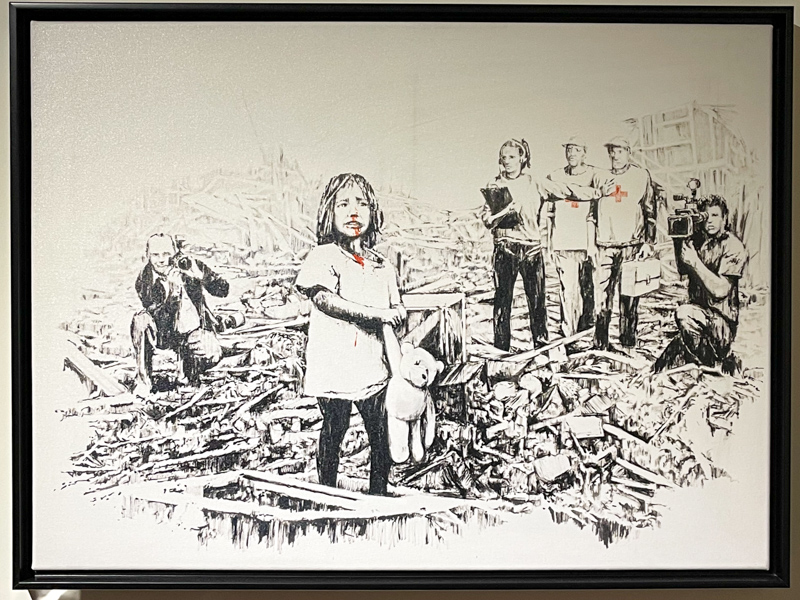 Finally, Banksy. Nobody knows who Bansky actually is, though many suspect him to be Robin Gunningham of Bristol, England. I hope it is never confirmed. The anonymity has contributed to his brand; he has become an Everyman, in it for the art and not fame, poking at the status quo, a sentiment all of us share as we actively scurry (rats feature prominently in his work) to perpetuate said status quo. (Particularly if we benefit from it.) There is a sense of amusement, rebellion, and disgust that permeates his works, usually spray painted on walls in cities around the world. I understand his perspective, as I too grapple with feelings of amusement, rebellion, and disgust at my own, privileged existence. His incisive humor and political digs sting, and I love that his art resonates loudly with cognitive dissonance. We should all live in a state with more cognitive dissonance ringing in our heads. It makes us uncomfortable but can lead to new connections forming in the brain. Unfortunately, none of us particularly like being uncomfortable.