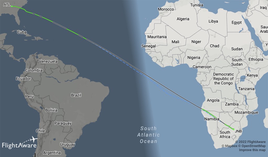 We begin our travels departing JFK and fly to Atlanta, where Delta has one direct flight per day to Johannesburg. After flying across mostly water for 15 hours — which I find enormously disconcerting when I stop and think about it, for apparently we live on a water world — we arrive around 5 PM South African Standard Time and spend the night. Joburg is six hours (and six months ahead, it’s Fall) ahead of The Eastern Time Zone. The next day we depart northward to Kasane, Botswana, which is in the north east of the country, near where Zambia and Mozambique meet.