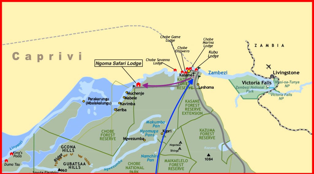 At 11:30 tomorrow morning, 4:30 A.M. EDT we fly on Airlink Airlines to Kasane, Botswana and drive to our first lodge, Ngoma Safari Lodge. We should be there in time for the evening game drive, and the first animal pictures.