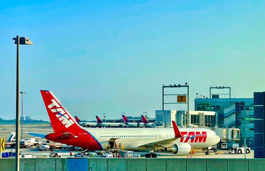 There are 512 guest rooms and some very thick glass windows, which overlook the active runways. Or Queens if you’re cheap. The phones are even rotary.