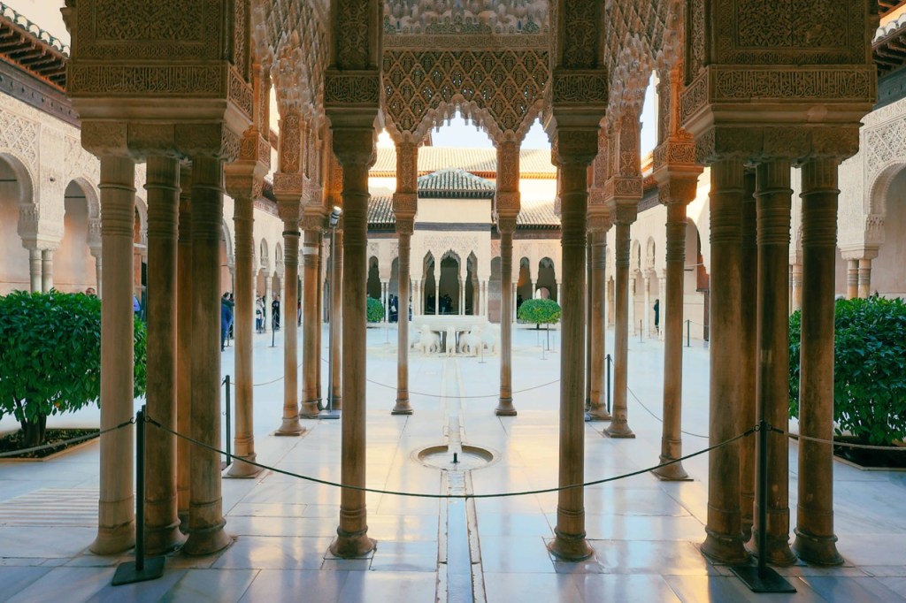 Because of earthquake resistant building practices, many of these 120 or so columns are original. This is The Courtyard of the Lions. In the center is a channel for water to flow.