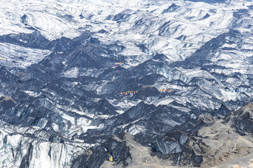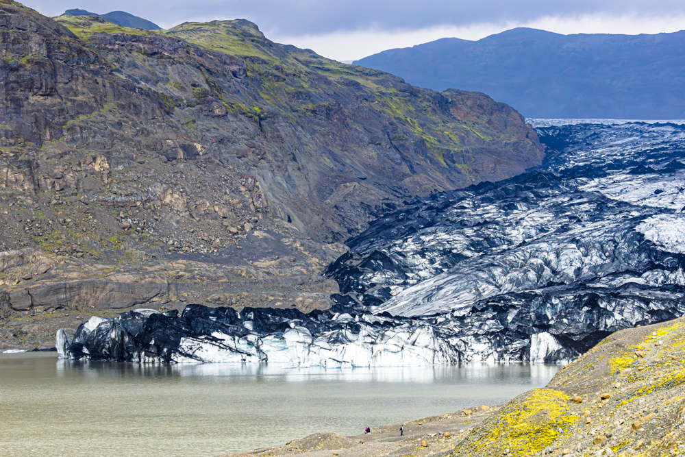 The last stop was a brief walk to a glacier spur. You can hike on it. Guides will take you, as well as provide the appropriate gear. The black is volcanic ash.