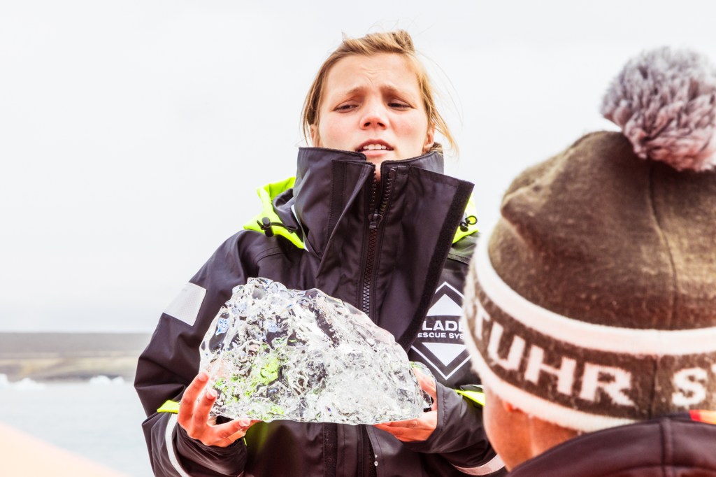 Or in chunk form, as our guide above is showing. This is frozen water, ice in English, or, ís in Islandic. Whereas English uses ice and snow to describe solid precipitation that falls from the sky, here there are dozens of words for subtle variations of ice and snow. It is a neat example of how language shapes how we think about our natural world.