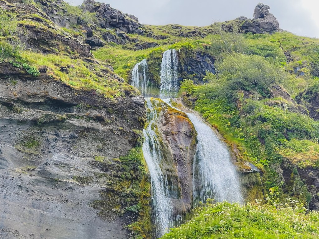 Most of the waterfalls in this section of Iceland formed via the same process. Once upon a time, the land was covered in a very heavy glacier. We’re talking about 10,000 years ago during the last ice age. Their weight pushed the land down. As the Earth warmed and the glaciers retreated, the land rebounded. This created the cliffs over which many of these waterfalls cascade. The flat land from the cliffs to the sea used to be a shallow sea bed. Hence why it’s flat. The ocean buffed the rough edges smooth. Now it’s where most of the population lives. This sharp contrast from near flat to sheer vertical creates breathtaking scenery.