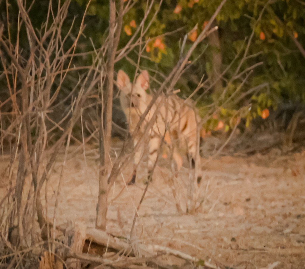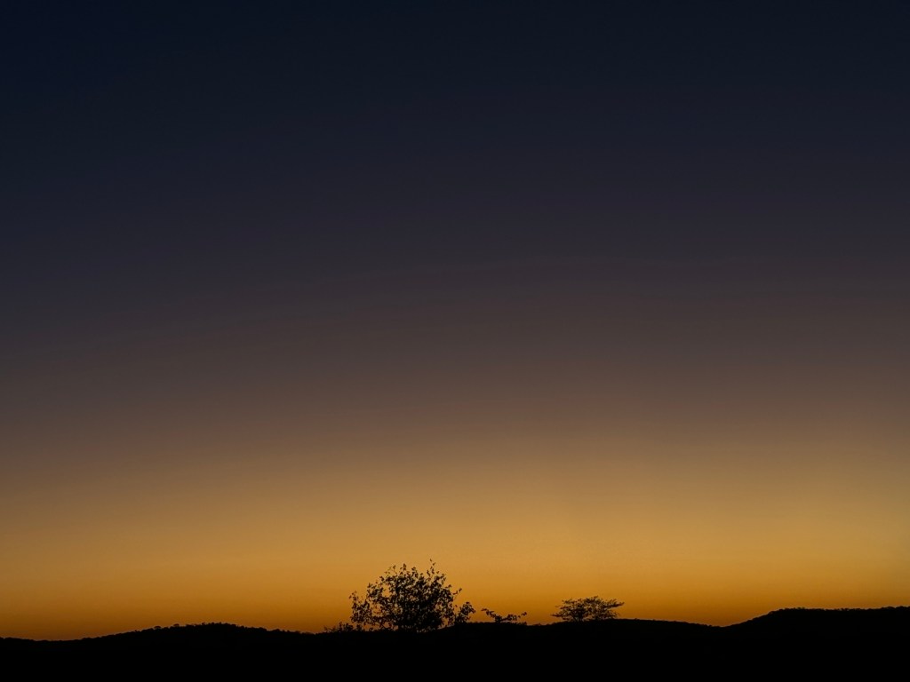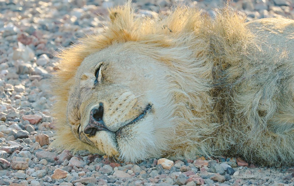 Black Faced ImpalaMale elephant, picture taken from a blind behind the watering hole. He knows we’re there, and is annoyed but not aggressive.It was a warm afternoon, and the lions were sleeping in.I made a loud noise and woke up this lion. This is his annoyed face. We are 2 meters from each other.Lions will yawn and groom themselves as they get ready for the evening. The lion’s tongue, clearly visible, can take your skin off with a few, good licks. Those paws, the size of your face, pack a punch.Ongava does a lot to protect rhino. This is a grazing white rhino.This is a Dik-dik, the smallest antelope species. It weighs 5 kg.They have small territories, and are easy to miss.This is a lousy picture because the only light I have is moonlight, but the creature, an Aardwolf, is so rare I wanted to include it. None of us will likely see one in the wild ever again. They eat termites and ants.Sunsets are a thing here.