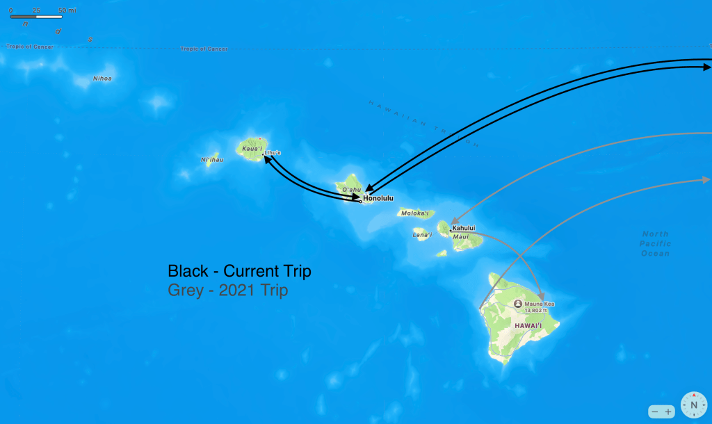 Today, Saturday, 4/19, is a travel day. It’s a 12 hour flight, direct from JFK. Napping will be the priority. We arrive around 230 PM local time. Hawaii is 6 hours behind the east coast.