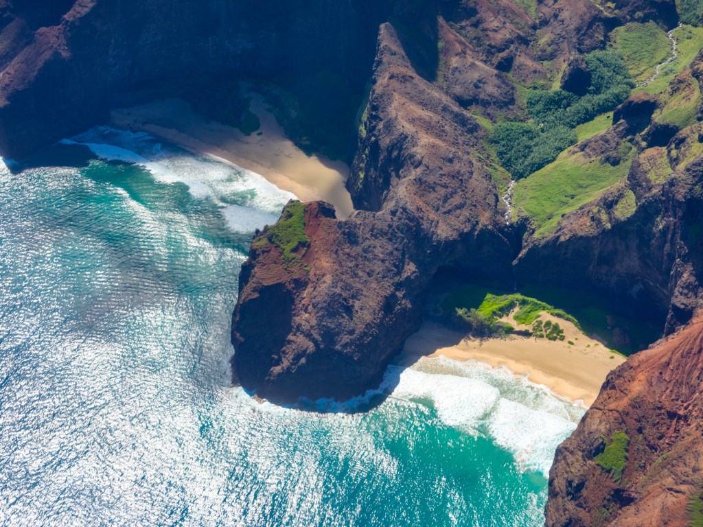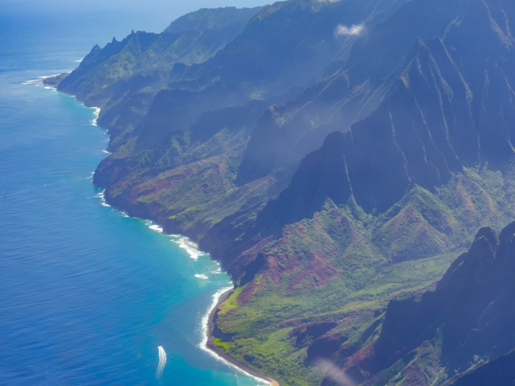 Jurassic Park, Lost, and King Kong were filmed here: the Nā Pali Coast. It is rugged and remote, with no roads and no development. You can hike it, but will need permits. Fair warning, it’s one of the 5 most dangerous hikes in the world.